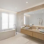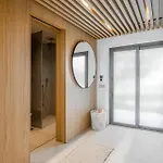 Villa comprend une salle de bains avec un bidet, une toilette séparée et une douche. Un sèche-cheveux, des serviettes et des pantoufles sont également fournis.